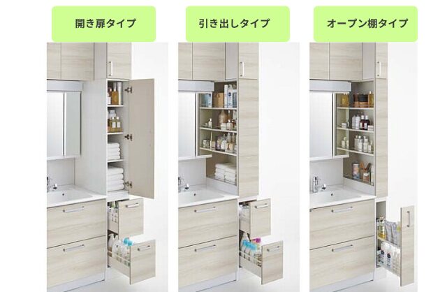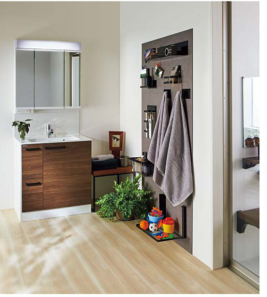 洗面空間に溢れがちな日用品も、『ラクトワ』の多彩な収納オプションが解決します。