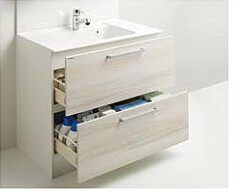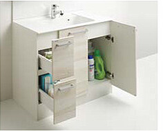 小分けができる引出しと収納スペースの広い開き扉の組み合わせで、効率よく収納できます。