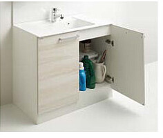 収納スペースの広い開き扉タイプ。高さのあるバケツや掃除道具などたっぷり収納できます。