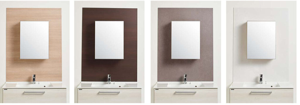 カウンターと鏡の間の部分に設置可能。マグネットアイテムを使った収納力と、デザイン性を両立することが出来ます。