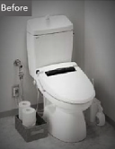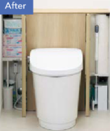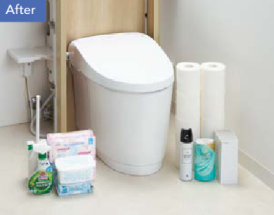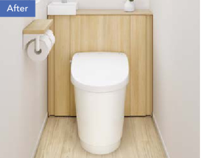汚れやすく、手の届きにくい便器奥をキャビネットで隠して、カンタンにお掃除ができるようになりました。