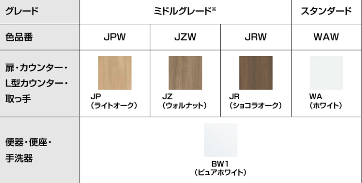 🌟ミドルグレードカラーとして木目3色、スタンダードカラーとして単色(色:ホワイト)をご用意しています!