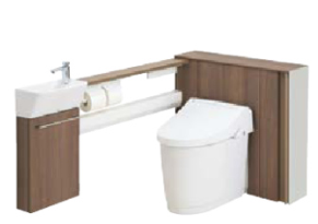 LIXIL「Jフィット」は、従来のトイレの課題であった「収納」「掃除のしにくさ」「節水性能」の全てをキャビネットデザインと最新機能で解決します。