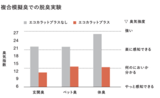 エコカラットプラスはにおいの原因となる成分を吸着。玄関特有のにおいにも脱臭効果を発揮します。