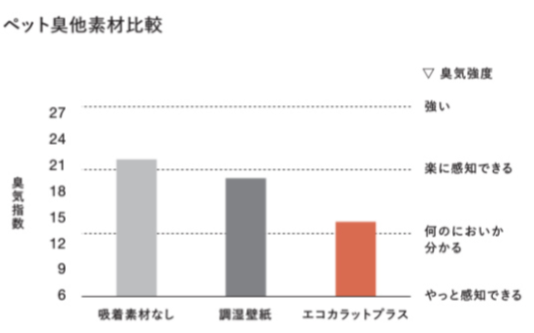 室内でペットを飼われている場合、嗅覚が慣れてしまうこともあって、ペットのにおいを感じにくくなってしまうことも。自分では気がつきにくいことだけに、来客の反応が気になることもありませんか?エコカラットプラスなら強いにおいも壁全体でお部屋を脱臭します。