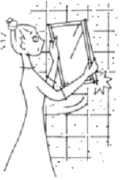 直接打ち込みますと、割れなど破損の原因になります。フックやビスの取り付けには電動ドライバーをご使用ください。詳しくは、施工業者にご相談下さい。