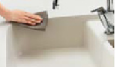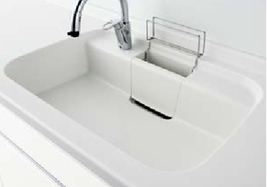シンク底面がフラットで排水口が見えない、スッキリデザインの人造大理石シンクです。