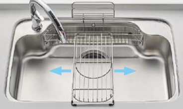2つのシンクサポートは使い勝手にも合わせて移動しながら便利に作業できます。オプションのどこにでも置けるサポートワイヤーと、洗い物をシンク内で水切りできる水切りカゴでさらに効率がアップします!