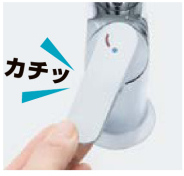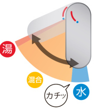 お湯が混合する位置にハンドルがくるとクリックでお知らせする省エネ設計
