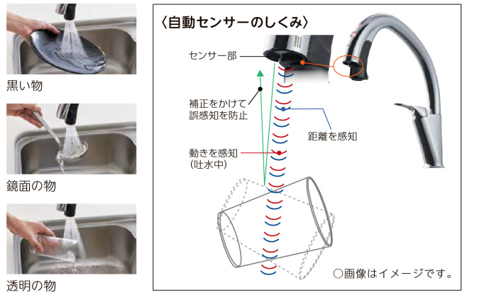 〇対象物の色の濃度や形によっては感知しにくい、または鏡面や水面に反応することがあります
