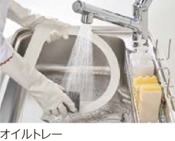 フッ素塗装のオイルトレーは、油汚れが簡単に洗えます。