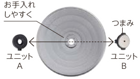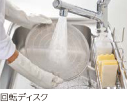 回転ディスクはワンタッチで取り外し。親水性塗装なので油汚れを水で洗い流せます。