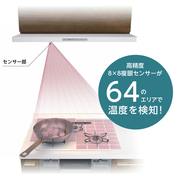 💡センサーで調理状況を捉えて、油煙をすばやくキャッチ!