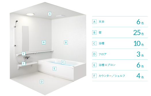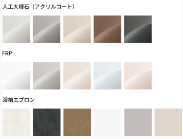浴槽とその前面の浴槽エプロンカラーを豊富に揃えました。