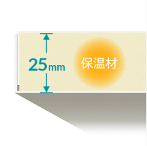 上から逃げていきやすい暖気を、保温材を含んだ25mmの天井で防ぎ、耐久性も担保しています。