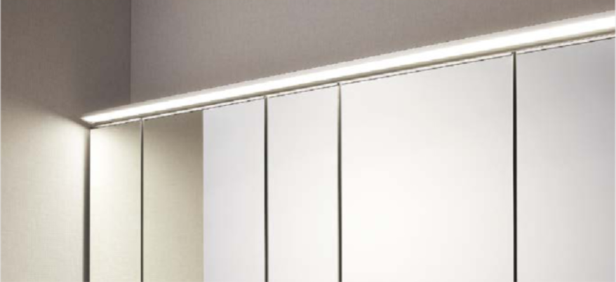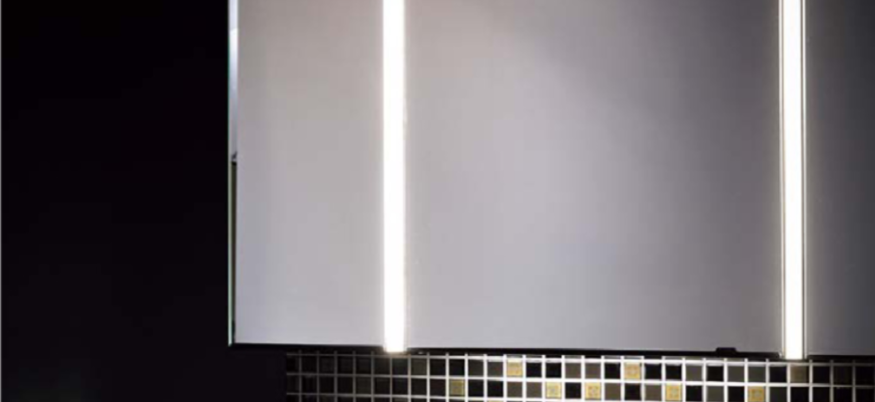 ルミシスのミラーキャビネットは、間接照明のように柔らかく光るLEDライトを搭載。
