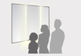 大型ミラーの幅に合わせて、スリムで一体感のあるデザイン。幅広い明るさと大型ミラーの美しさをより魅力的に演出します。