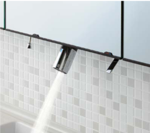 化粧品などで手が汚れていてもスイッチに触れずに照明をON・OFF、さらに調光※が出来ます。上部ライン照明や下部照明、上部LED照明もタッチレススイッチに対応しています。スイッチが露出しないので、すっきりしたデザインです。