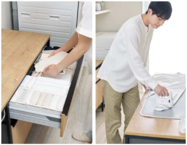 洗濯物の収納やアイロン掛け、仮置き、座って作業など多目的に使えます。