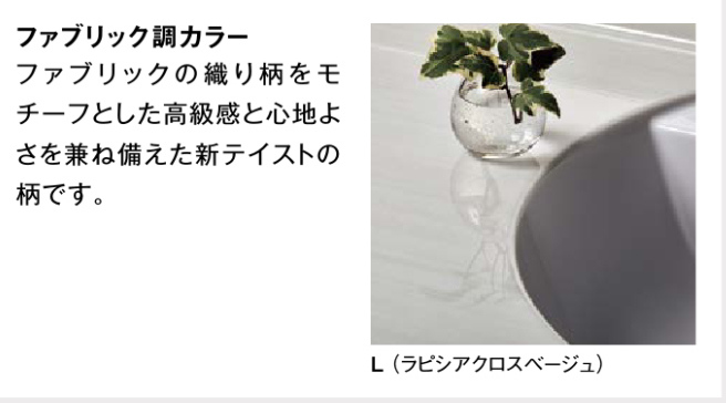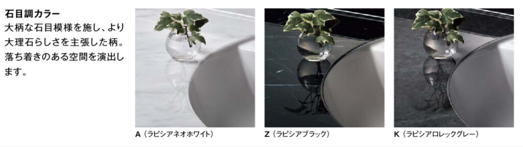 素材の魅力を伝える繊細で深みのある質感の「ラピシアカウンター」に新柄が登場。上質で表情豊かなカウンターは、心が満たされる洗面空間を実現します。また、カウンターとボウルの間につなぎ目がなく、美しさとお手入れのしやすさを両立したカウンターです。