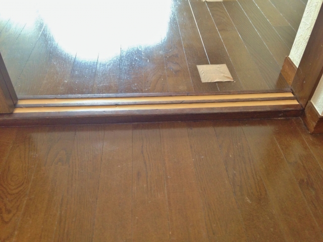 昔のフローリングは反りやすかったため、異なる部屋ごとに見切り材で区切り、床の動きを吸収させていました。