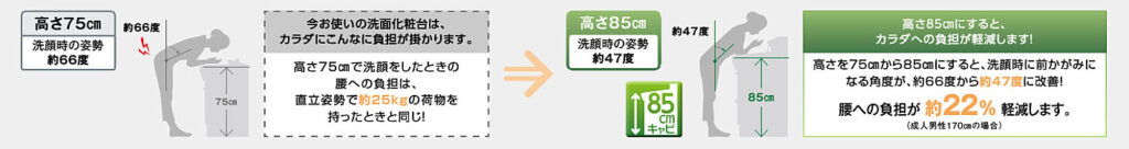 カラダにやさしい、高さ85㎝。