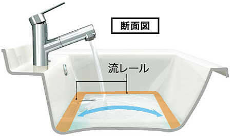 「流レ―ル」に髪の毛や泡を集め排水口へ導きます。