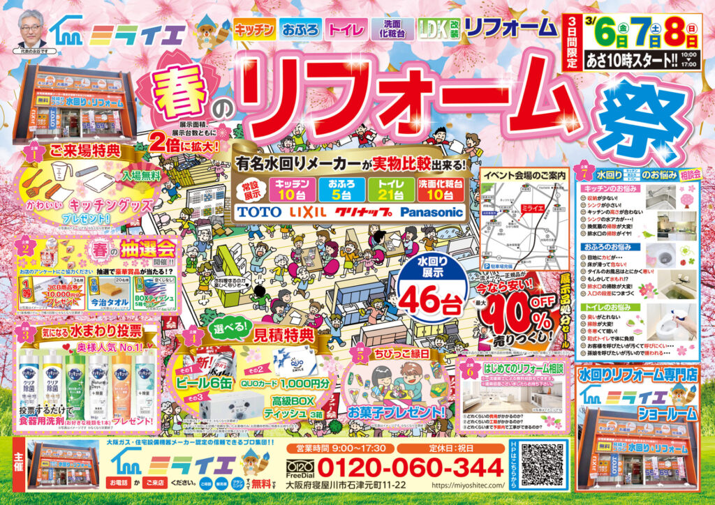 あさ10時から水回りショールーム ミライエにて春のリフォーム祭イベントを行います!